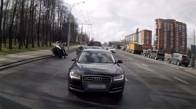 На месте аварии работали сотрудники отдела ГАИ Заводского РУВД Минска. Госавтоинспекция напоминает, что при совершении какого-либо маневра водитель всегда должен убедиться в его безопасности и уступить дорогу движущимся попутно транспортным средствам без изменения направления их движения.