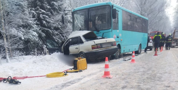 В Полоцком районе легковушка на встречке врезалась в автобус, погибли двое человек