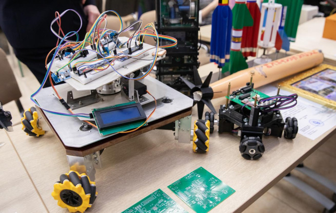 В рамках студенческих проектов на вставке представили несколько разработок БПЛА: спортивный квадракоптер 75 мм, который выиграл технологический конкурс Федерации гонок дронов России и теперь считается стандартом для участия в соревнованиях; автономный летательный аппарат «Буран» для отработки навыков пилотирования в ручном и автономном режиме; дрон для исследования помещений и построения трехмерного изображения.