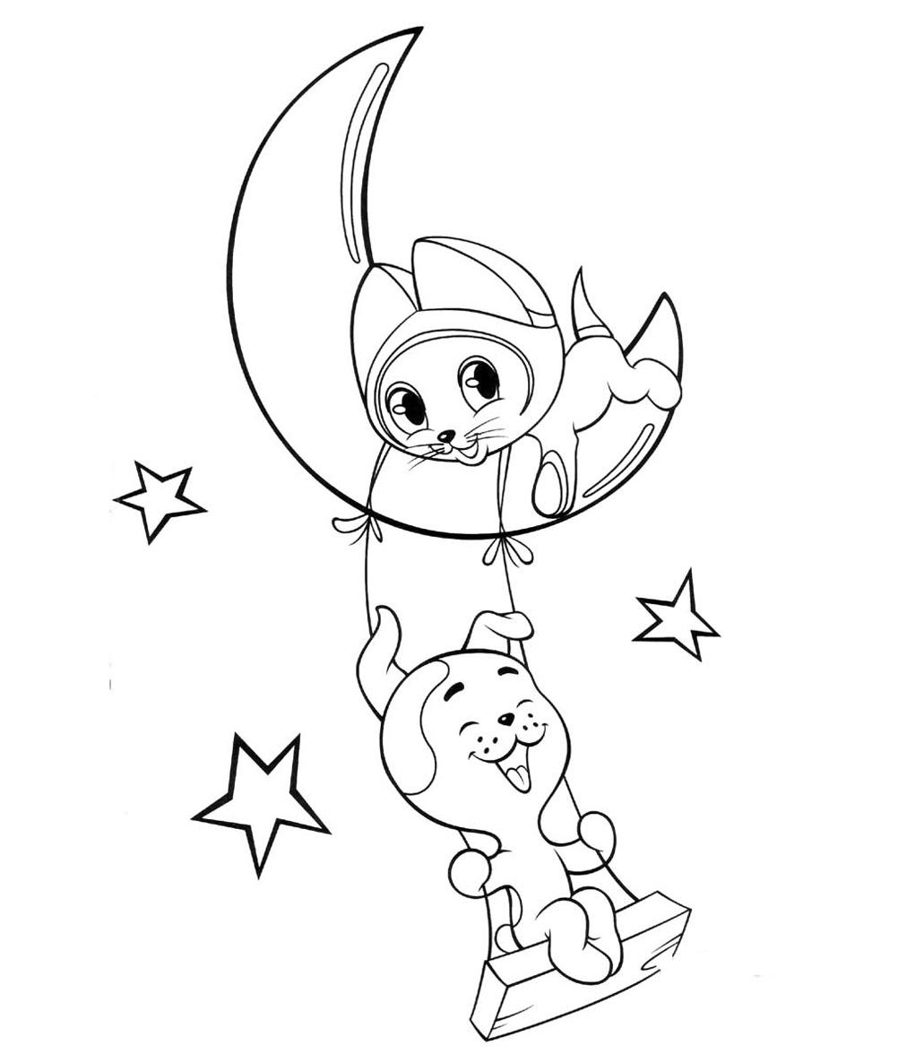 Котенок Гав и щенок на луне