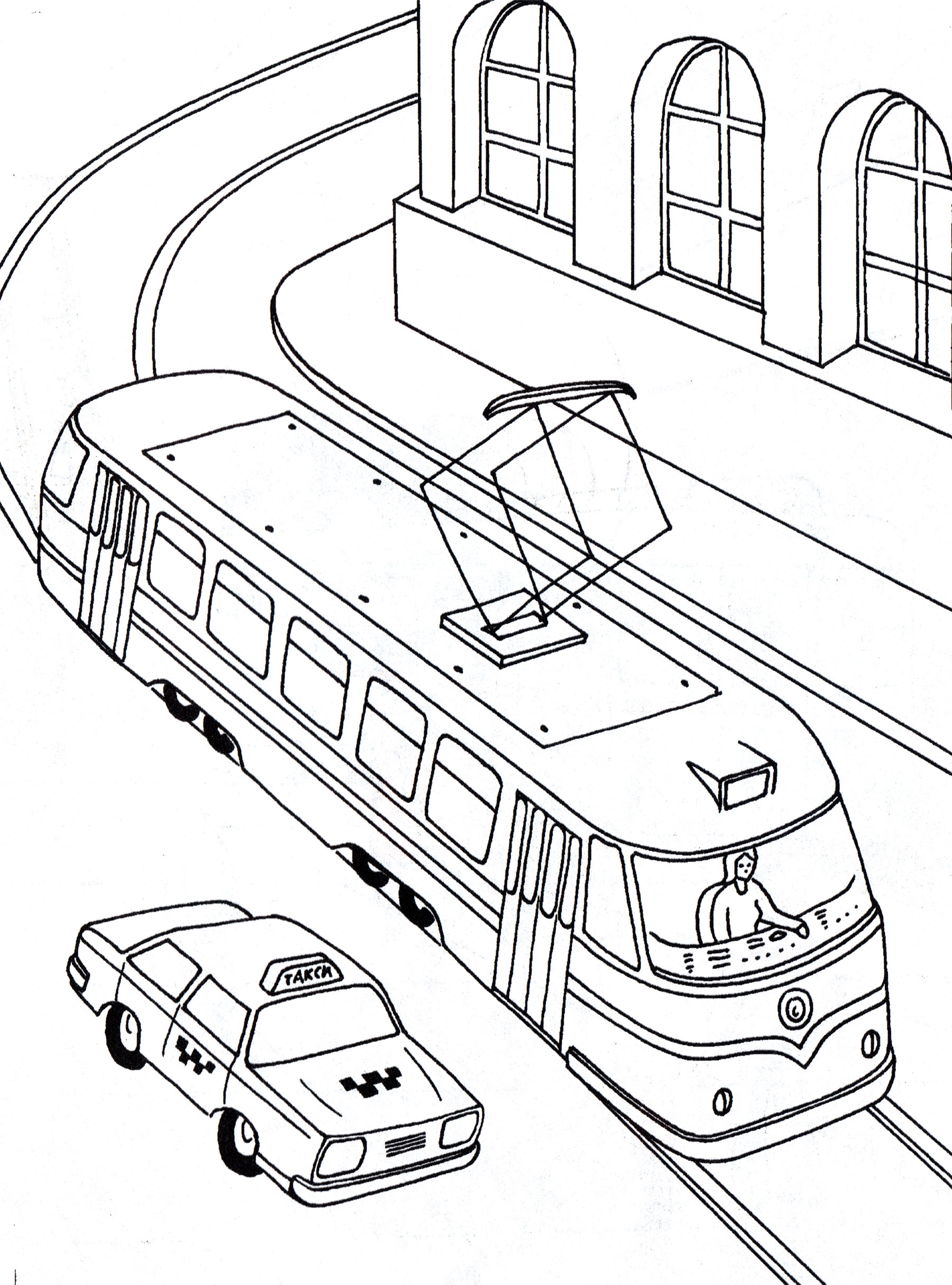 Трамвай и такси на светофоре